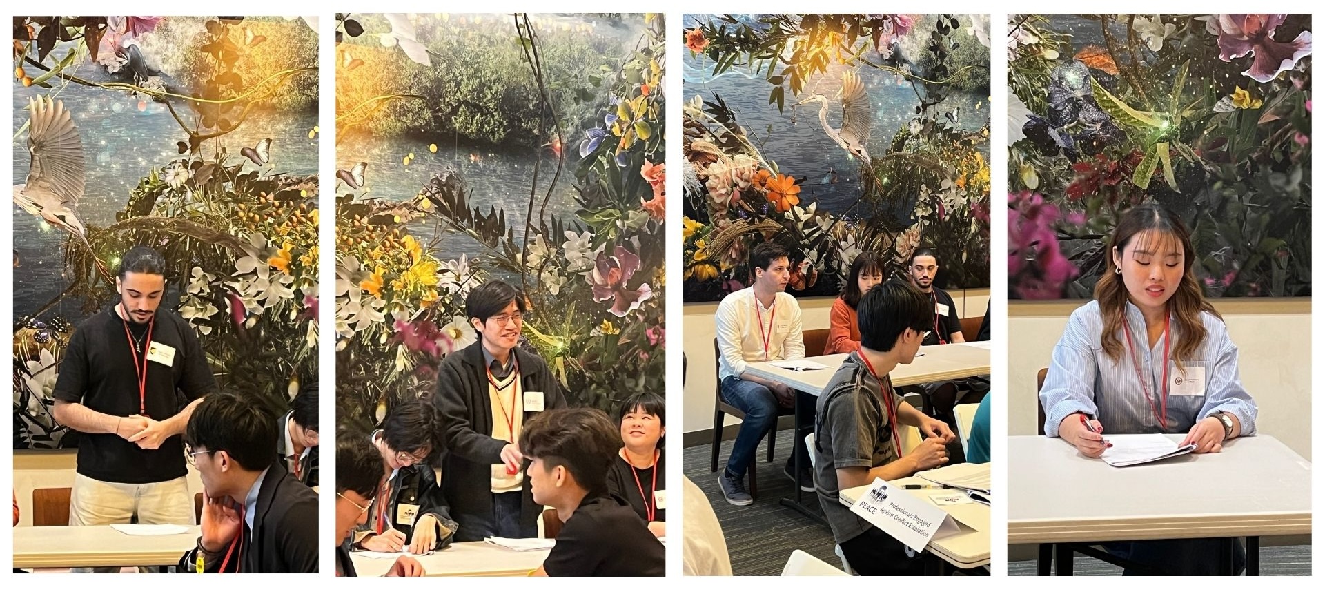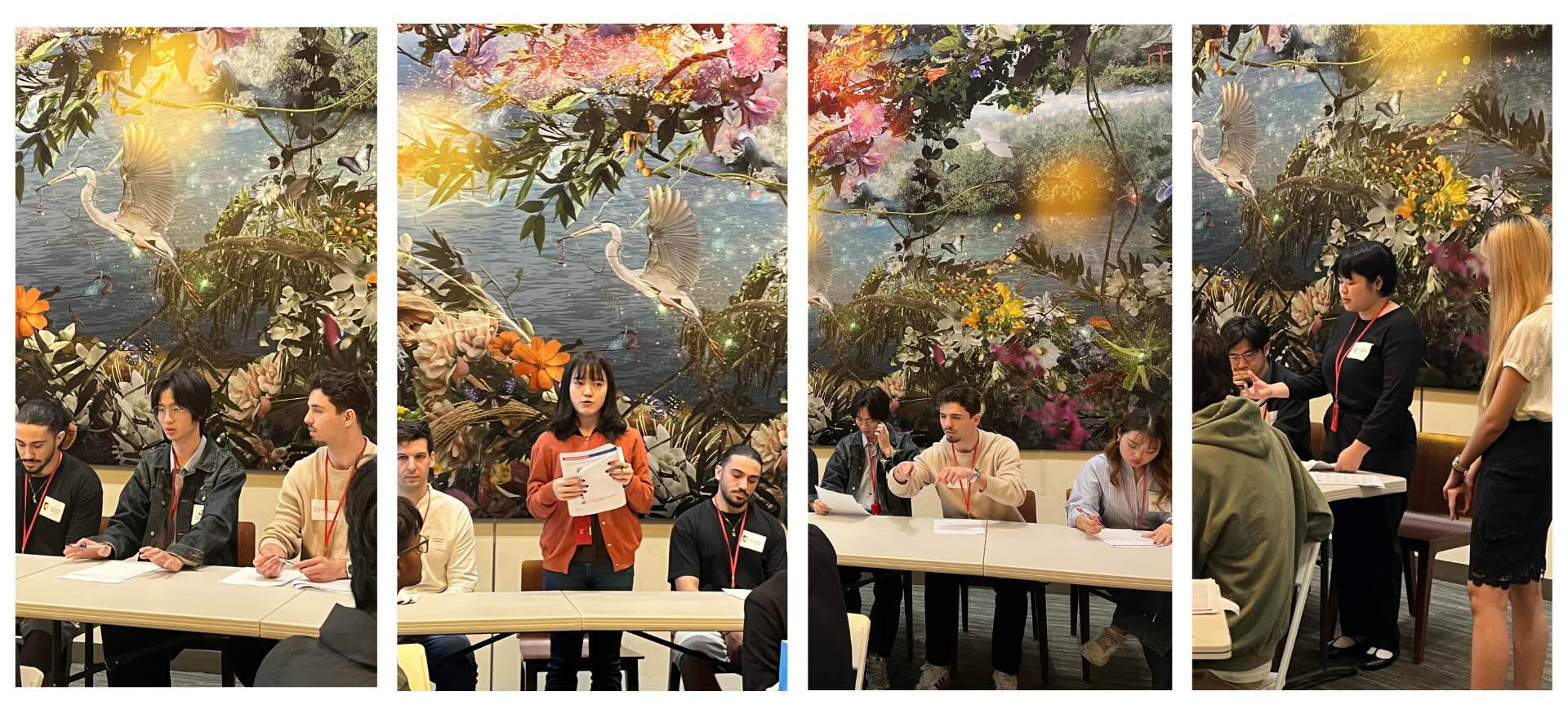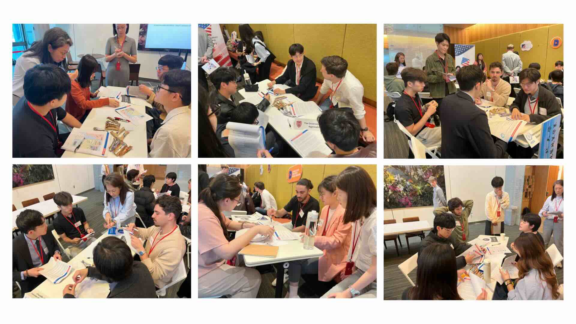現場演練將學生分為 6 組,分別扮演不同國家與非政府組織代表。在兩小時的緊湊過程中,同學們在指導員帶領下進行: